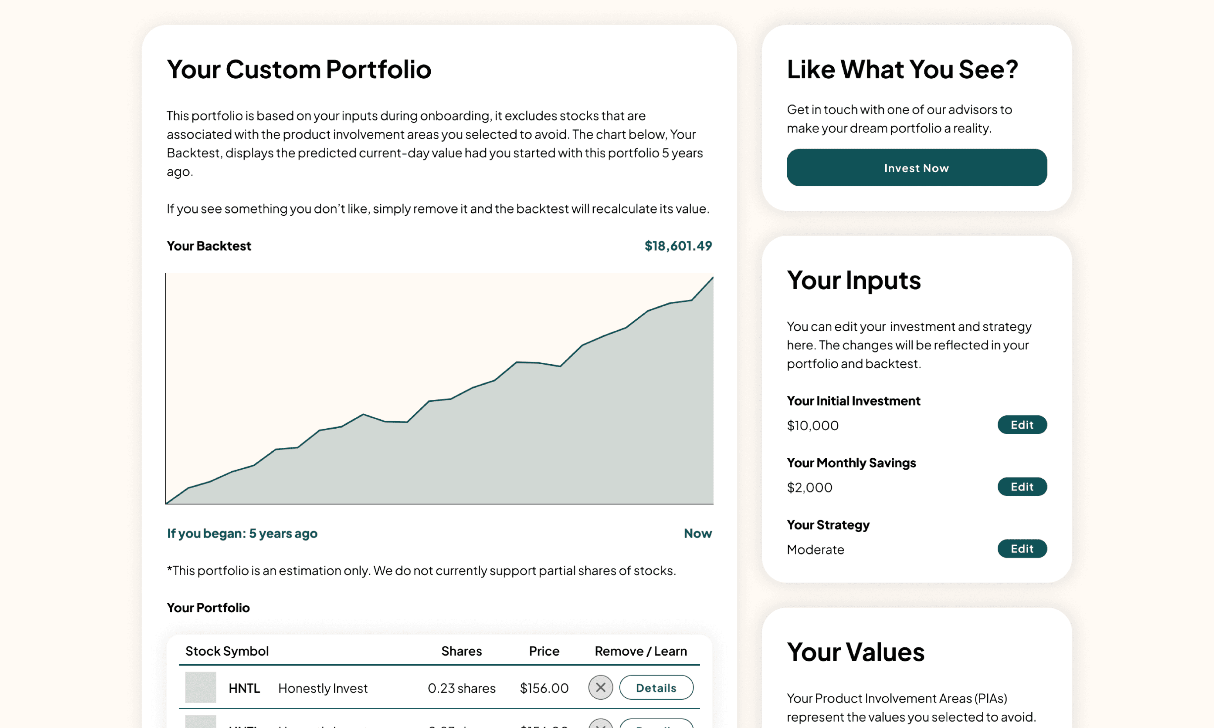 Honestly started with the goal of creating a personalized investing experience for people who care about where their money goes. Most investment platforms are generic or overly complex. Honestly sought to simplify the experience and build trust through clear language, transparency, and purposeful design.