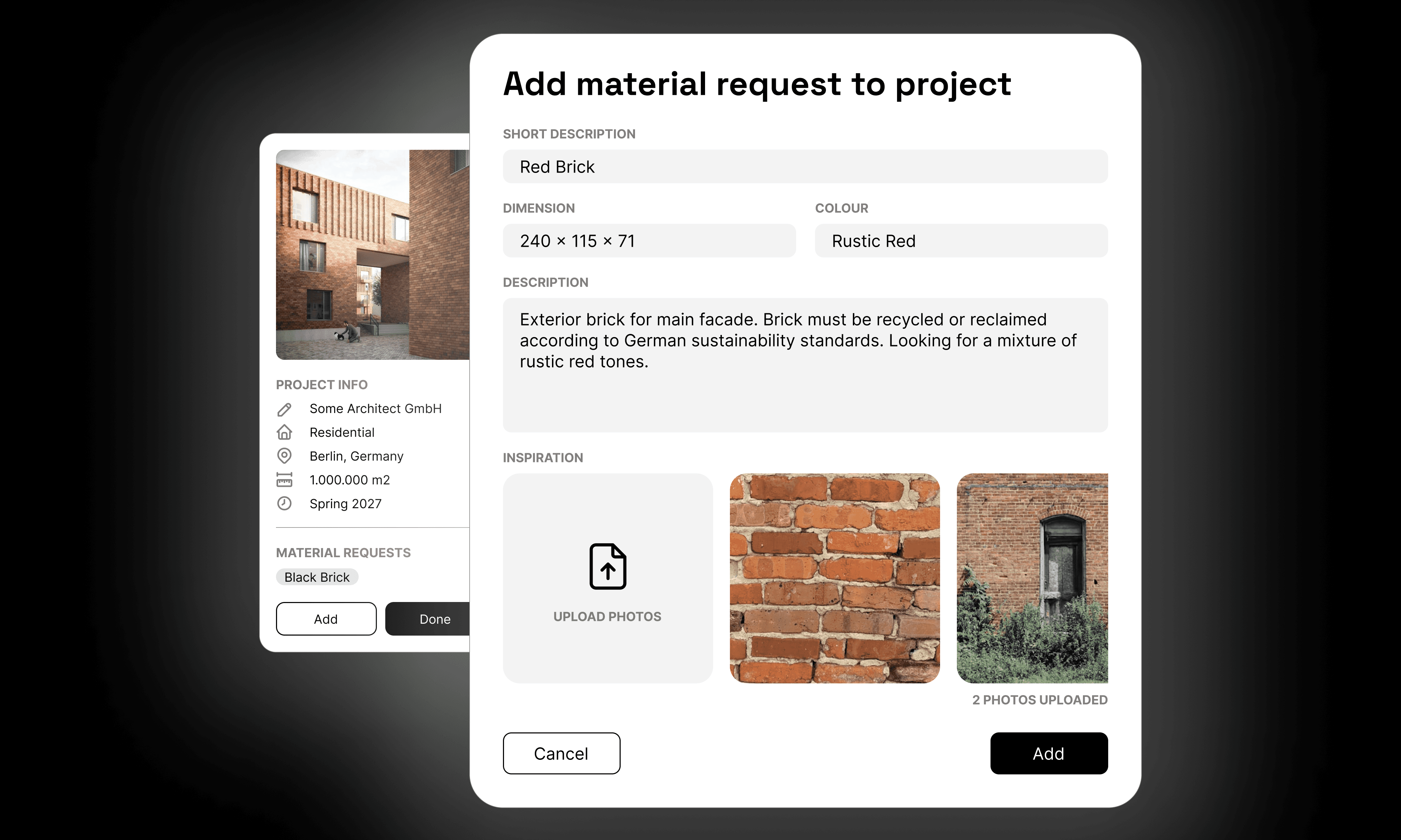 Designed and built a click-through prototype in Figma to test early concepts, prioritizing usability and clarity for both architects and suppliers.